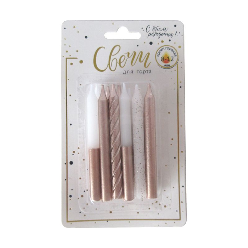 Свечи тортово-коктейльные Микс Ассорти Роза-голд, 8 см, 24 шт в упак.