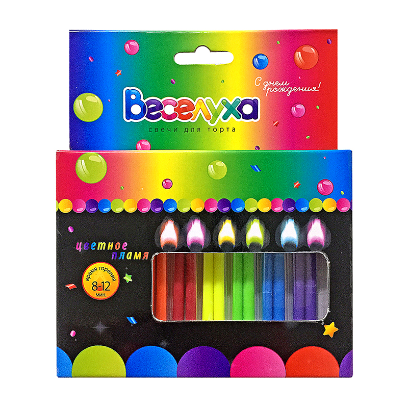 Свечи тортовые классические «Цветное пламя» / 12 шт., 6 см /