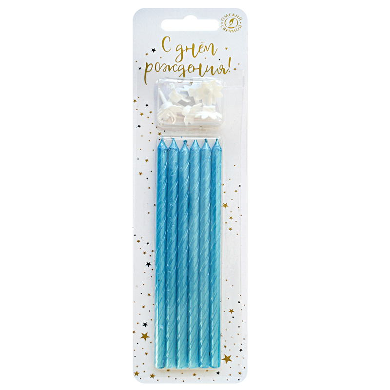 Свечи тортовые классические Голубые, 13 см, 6 шт в упак.