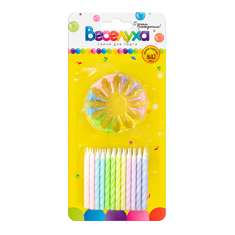 Свечи тортовые классические Макаронс (Ассорти) с держателями / 24 шт., 6 см /