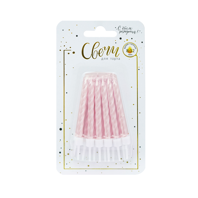 Свечи тортовые классические «Перламутр» Нежно-розовые с держателями / 12 шт., 6 см /