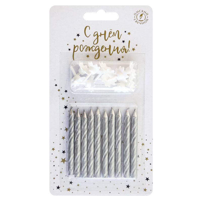 Свечи тортовые классические Серебряные / 10 шт. /