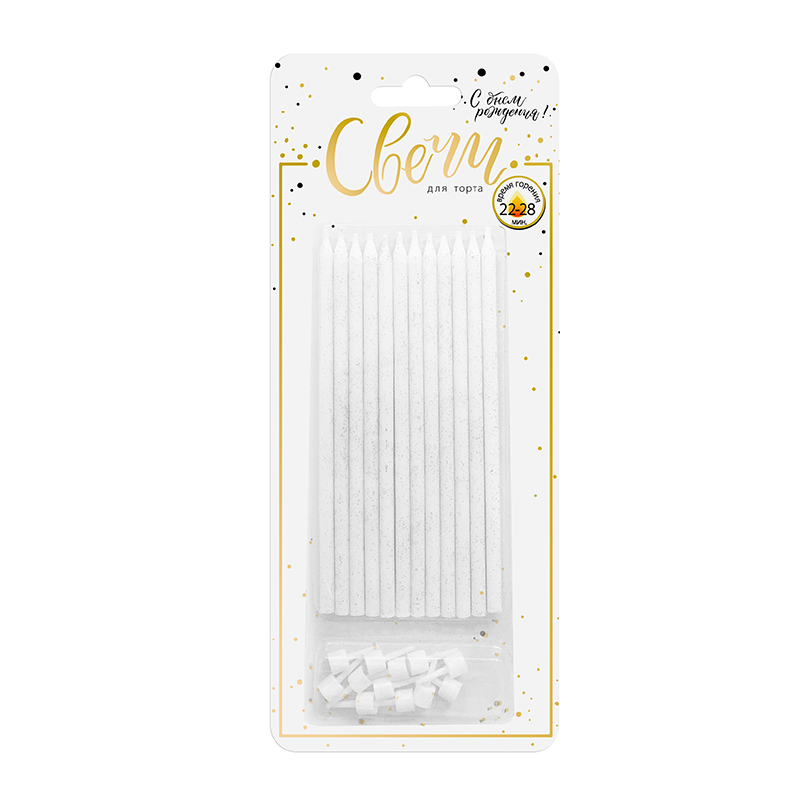 Свечи тортовые классические XL с серебряным глиттером с держателями / 12 шт., 15 см /