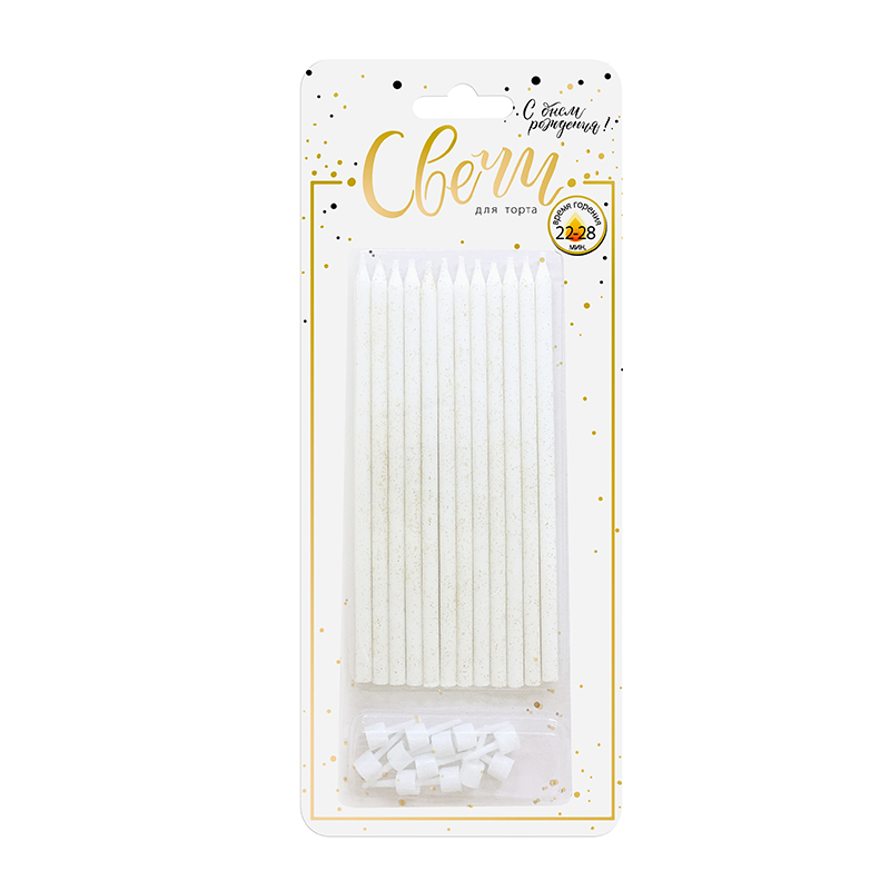 Свечи тортовые классические XL с золотым глиттером с держателями / 12 шт., 15 см /