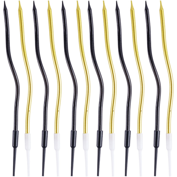 Свечи Волна Микс черн/золото 13см 12шт/G
