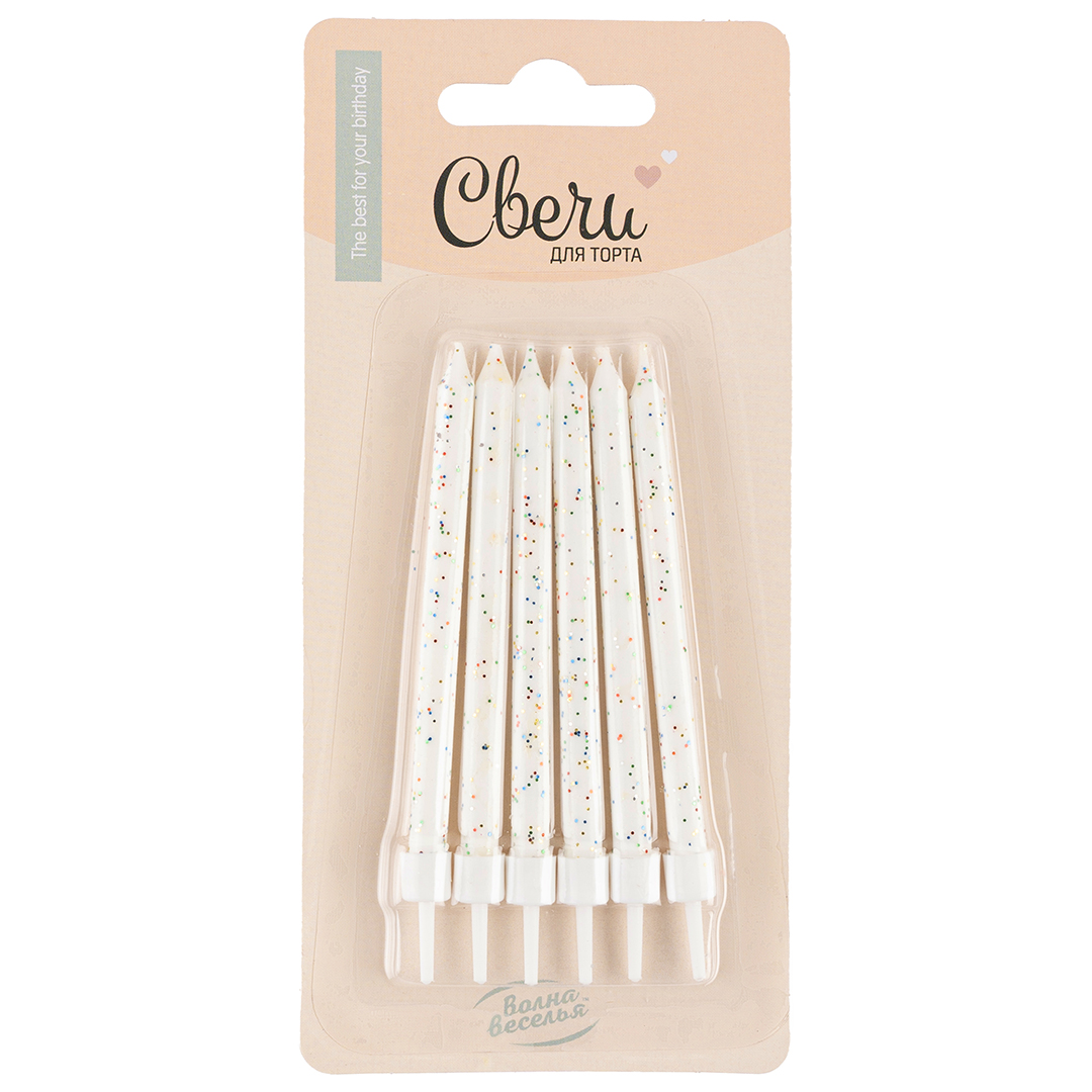 Свечи Яркие искры, Белый, с блестками, 8 см, 6 шт.