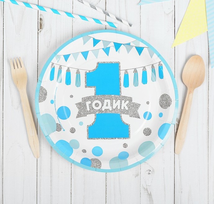 Тарелка бумажная «1 годик» мальчик, 23 см (в наборе 10 шт), 1 шт