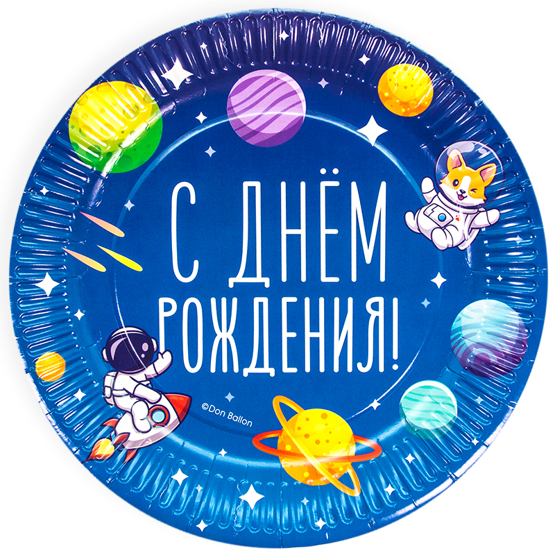 Тарелки (9»/23 см) Космос, С Днем Рождения! (яркие планеты), 6 шт.