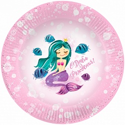 Тарелки (9»/23 см) С Днем Рождения! (принцесса Русалочка), Розовый, 6 шт.