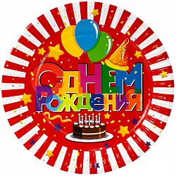 Тарелки (9»/23 см) С Днем Рождения (торт и шарики), Красный/Белый, 6 шт.