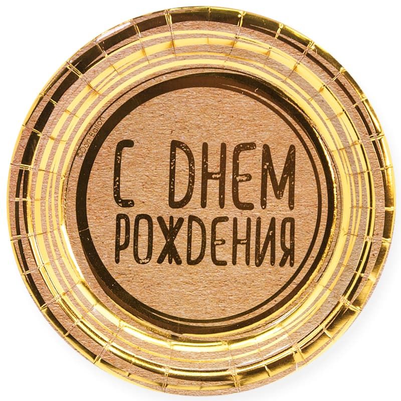 Тарелки (9»/23 см) С Днем Рождения (золотые нити), Крафт, 6 шт.