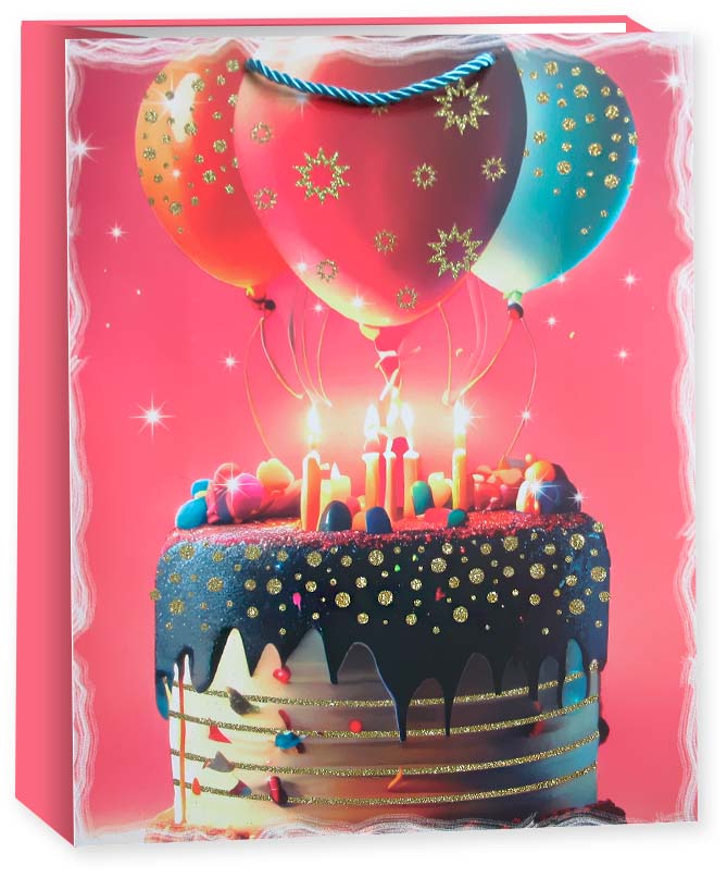 Торт на День Рождения, Дизайн №1, с блестками, 32*26*10 см, 1 шт.