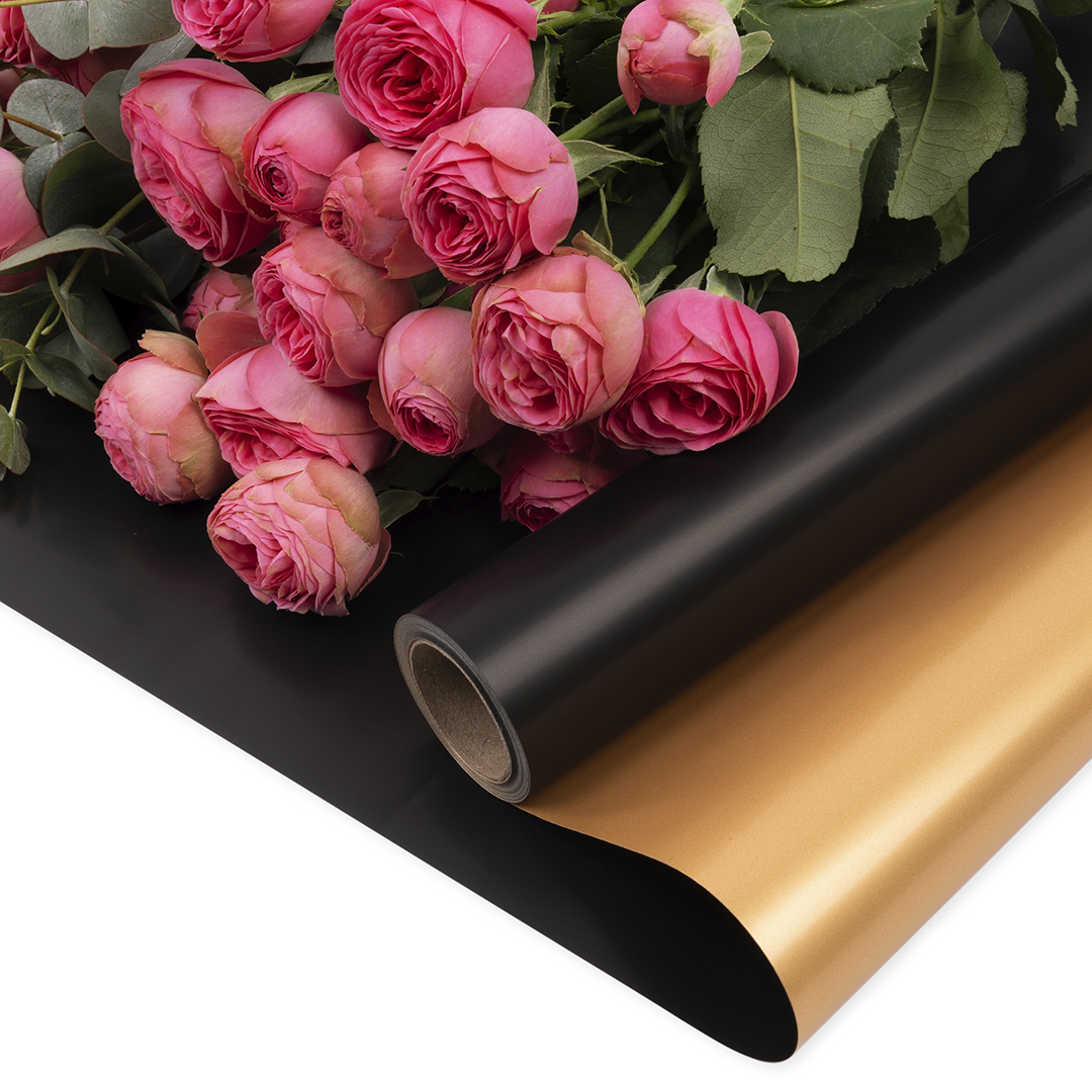 Упаковочная пленка 65мкр (0,57*10 м) Двухцветная, Черный/Золото, Матовый, 1 шт.