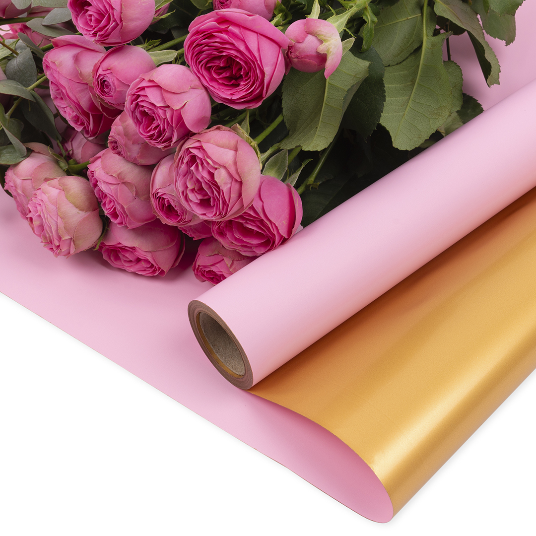 Упаковочная пленка 65мкр (0,57*10 м) Двухцветная, Розовый/Золото, Матовый, 1 шт.