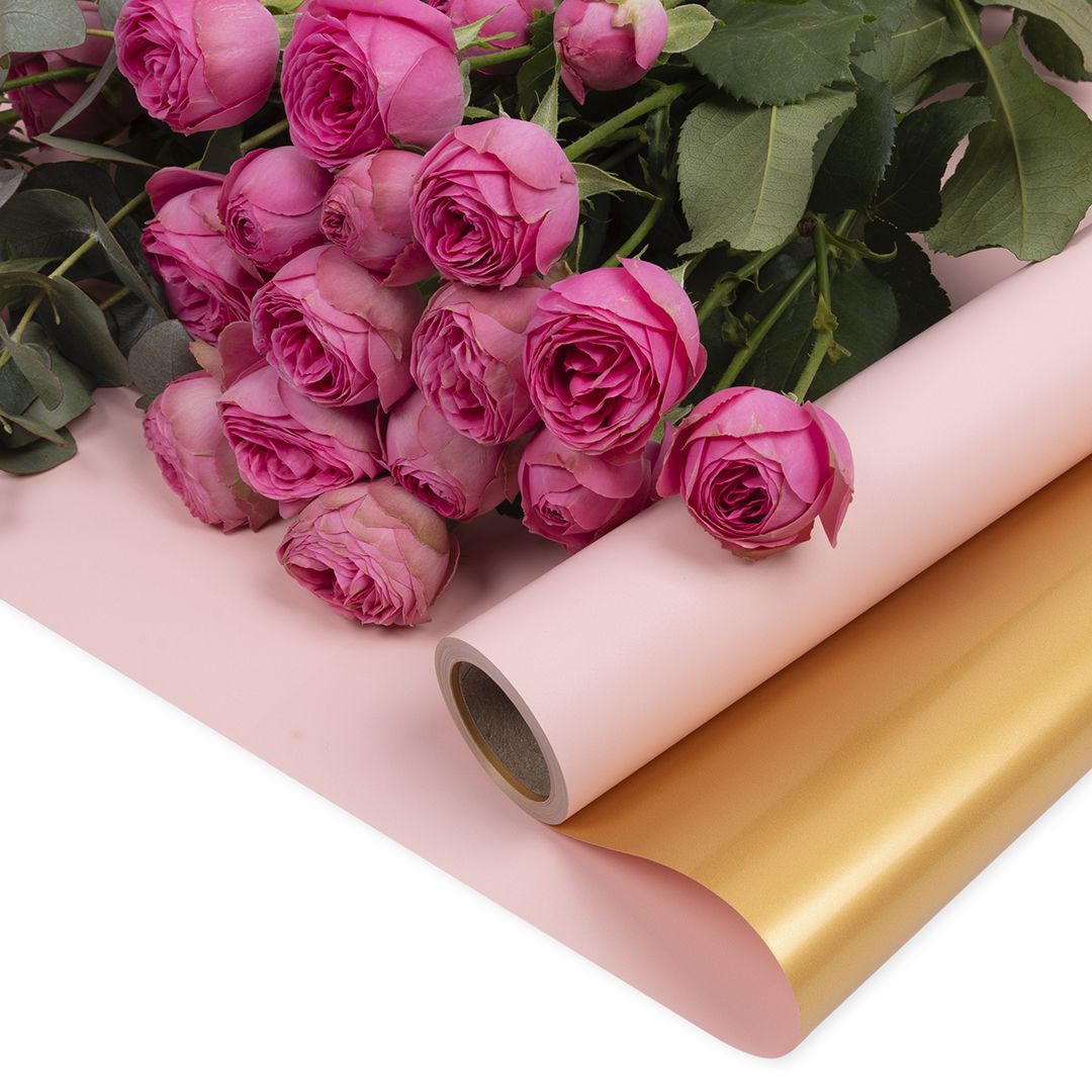 Упаковочная пленка 65мкр (0,57*10 м) Двухцветная, Светло-розовый/Золото, Матовый, 1 шт.