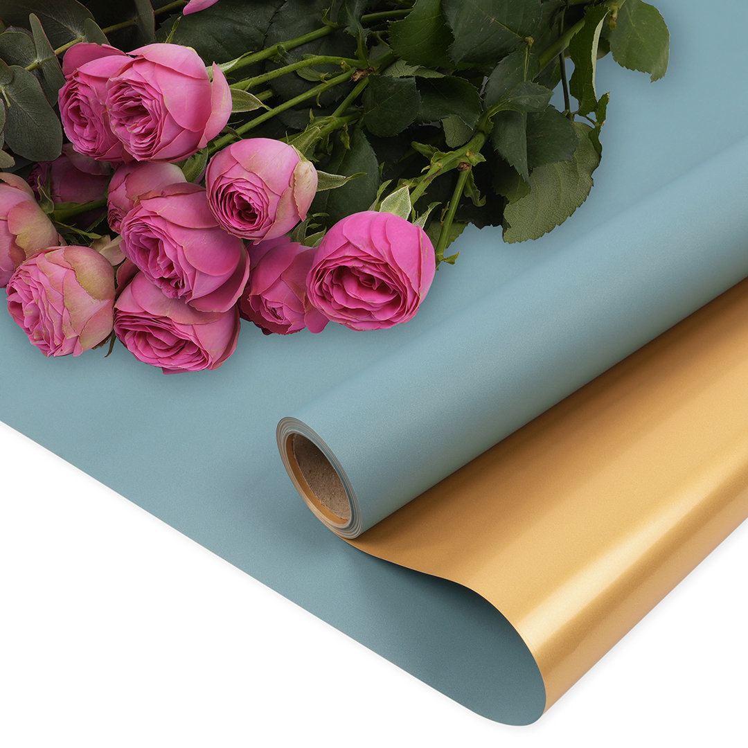 Упаковочная пленка 65мкр (0,57*10 м) Двухцветная, Тиффани/Золото, Матовый, 1 шт.