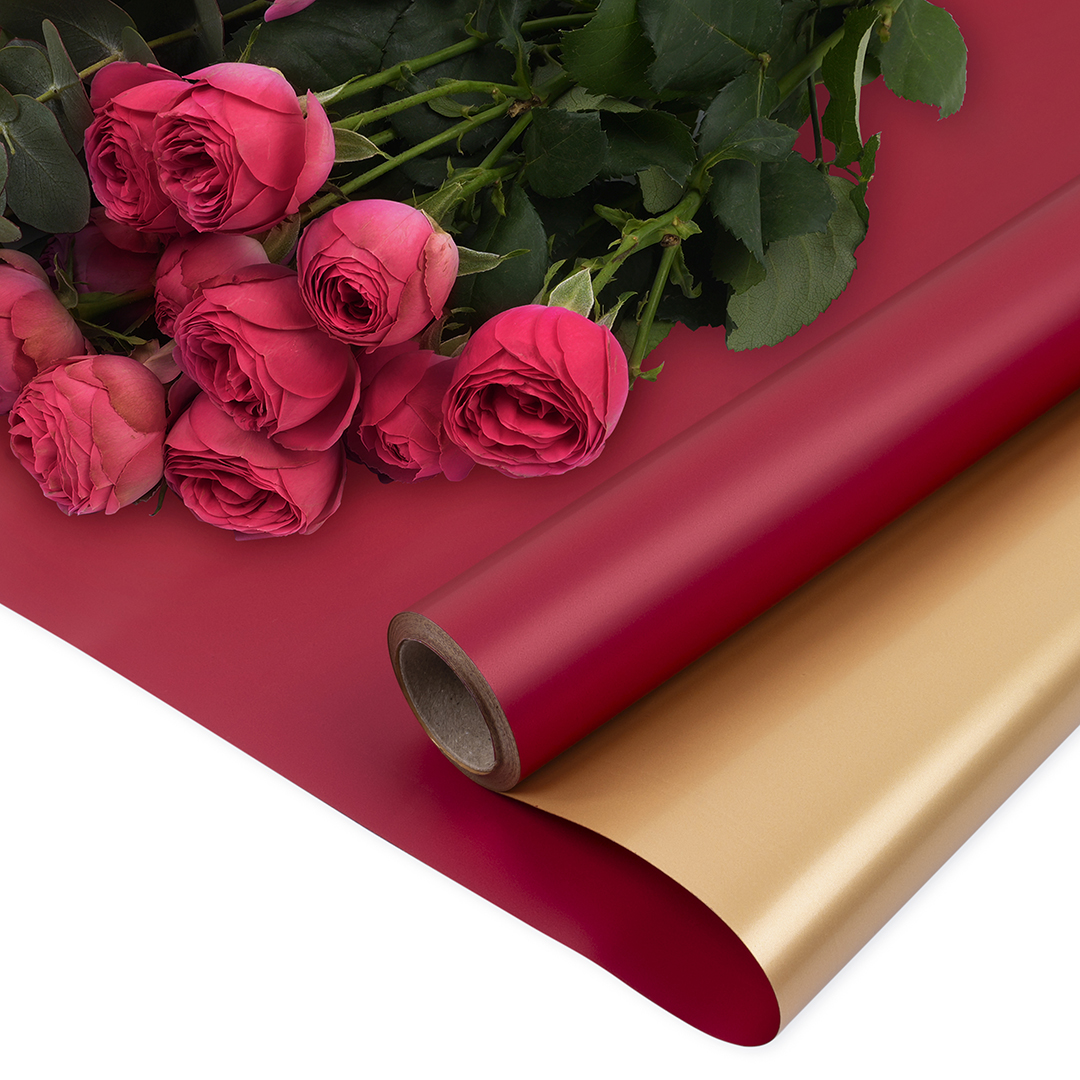 Упаковочная пленка 65мкр (0,57*10 м) Двухцветная, Винный/Золото, Матовый, 1 шт.