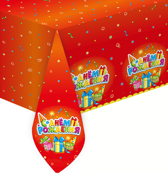 Яркая полиэтиленовая скатерть поможет сделать торжество ярче и веселее: она отлично украсит праздничный стол и сохранит его в чистоте.