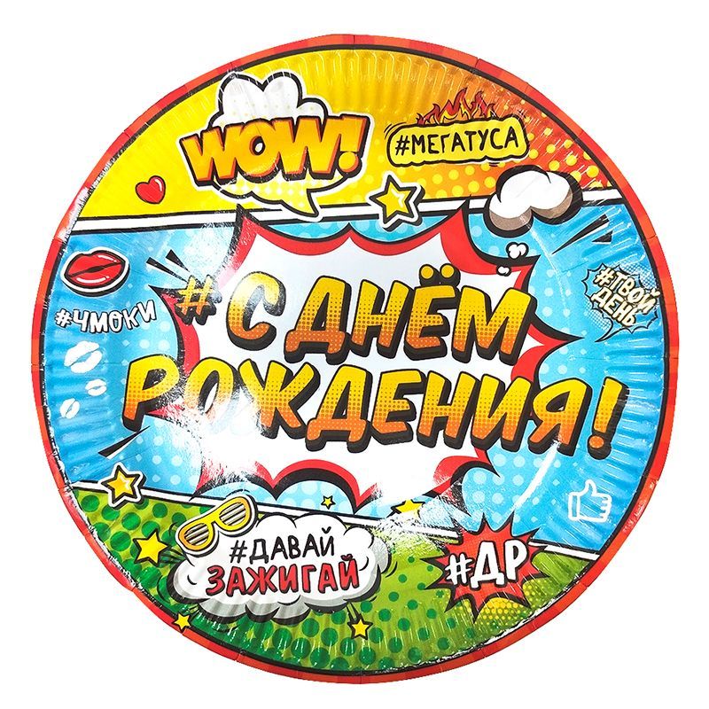 В Тарелки 18 см «С Днем Рождения» Молодежная / набор 6 шт. /
