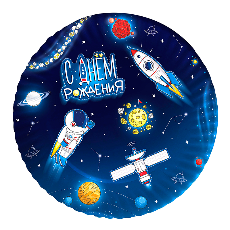 В Тарелки 23 см «С Днем рождения» Космос / набор 6 шт. /